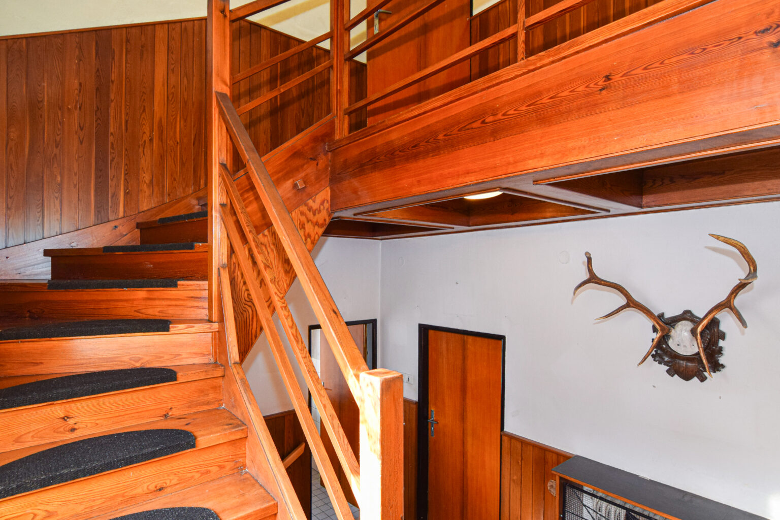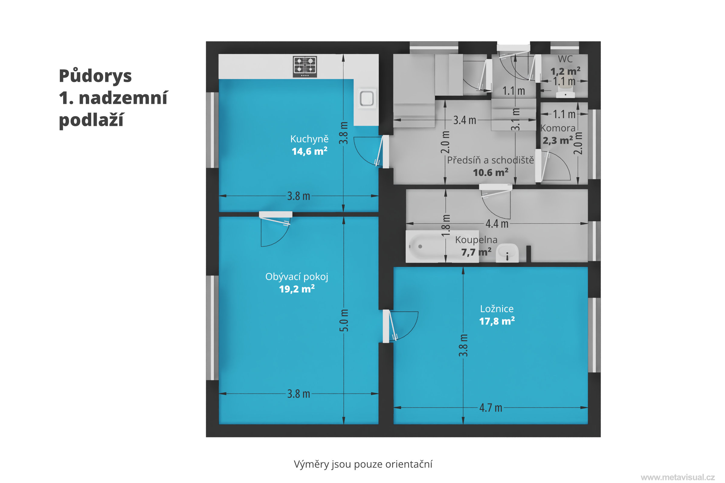 Do podkroví, kde jsou aktuálně dvě ložnice, se dostanete po dřevěném schodišti. Podkrovní prostor nabízí možnost dalšího rozšíření obytné plochy (viz orientační půdorys).